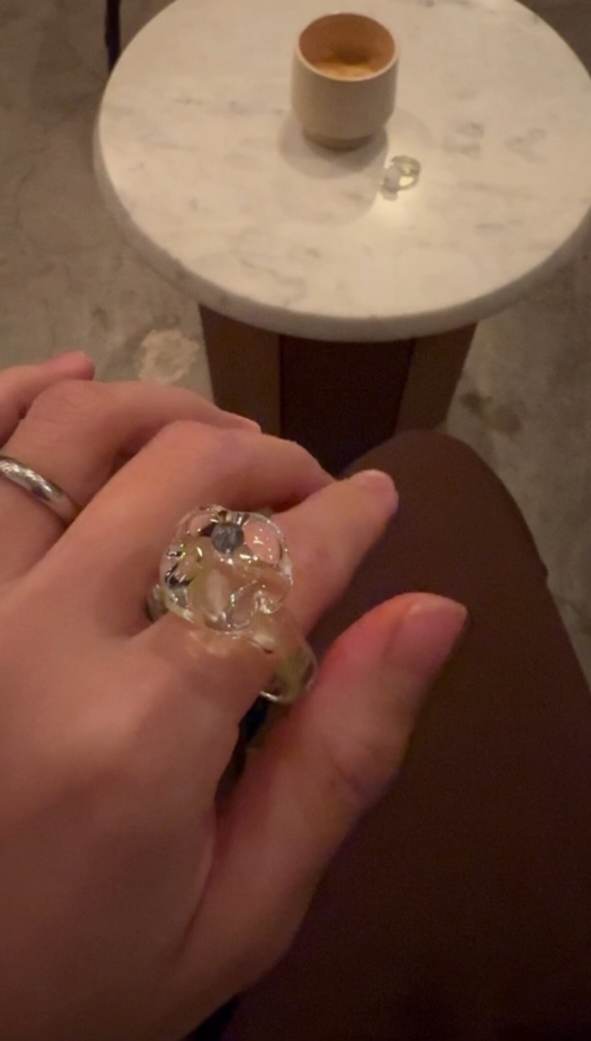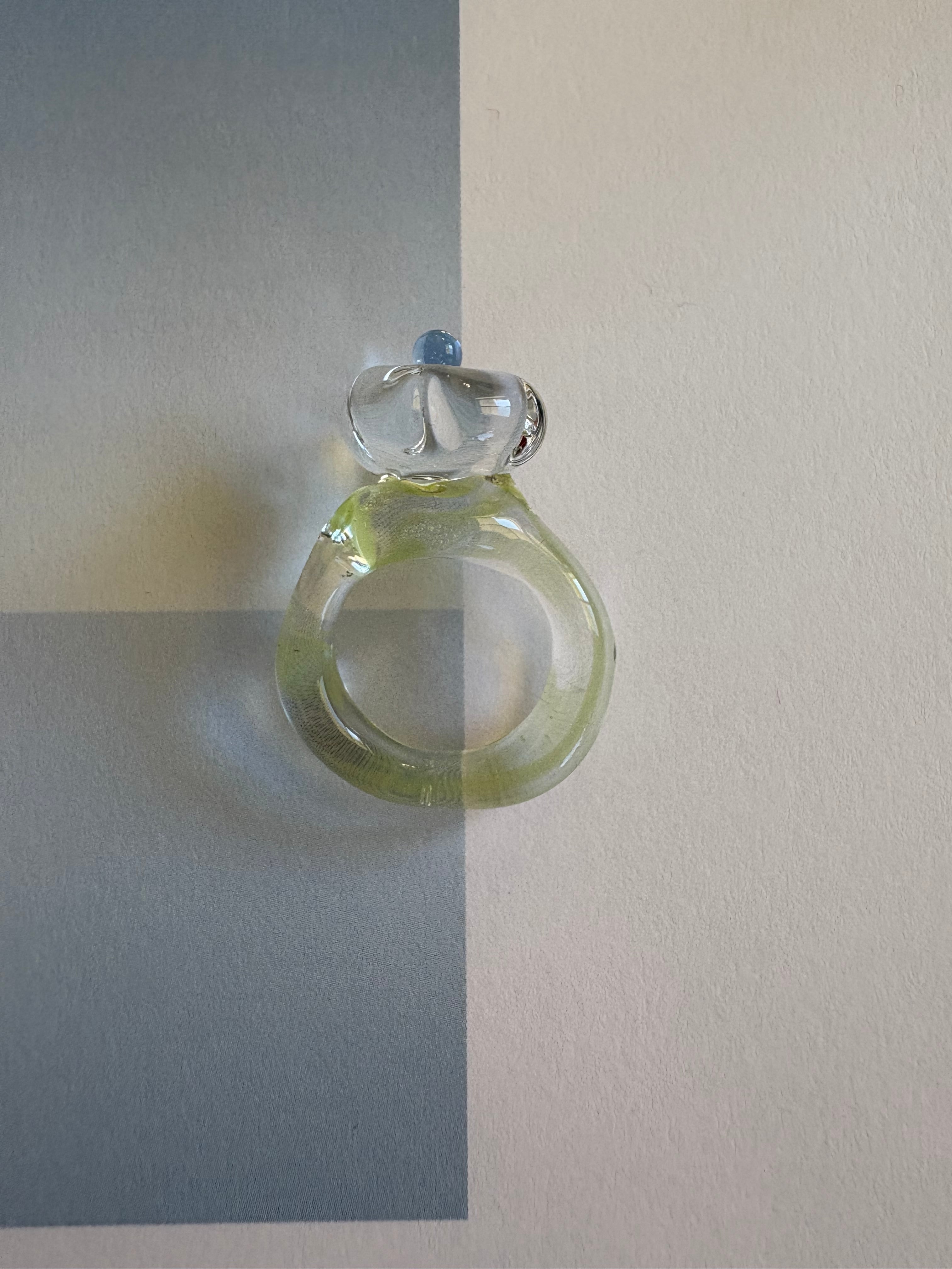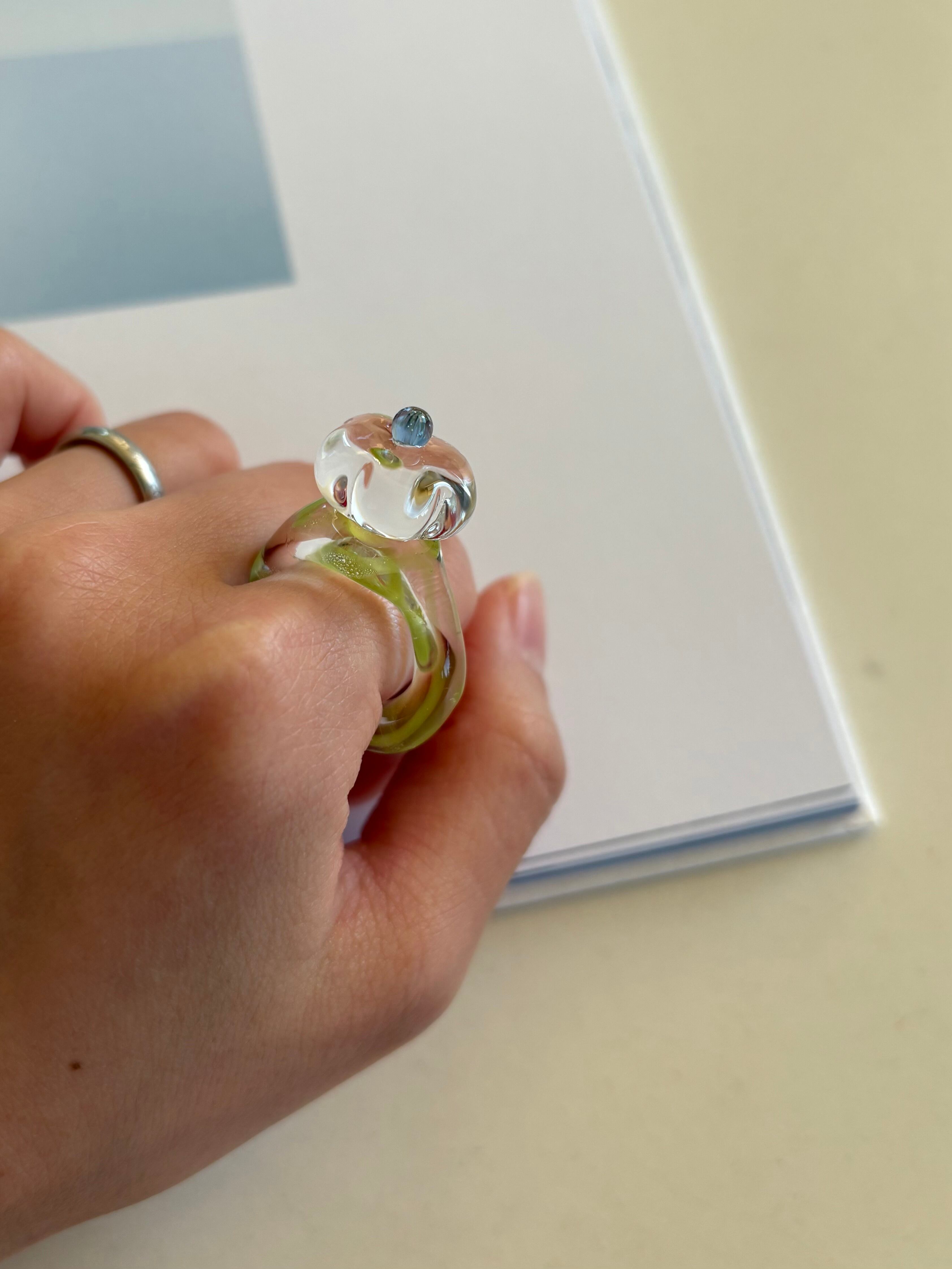 リング部分はクリアとグリーンを混ぜ、透明感のあるグリーンマーブルにしました。