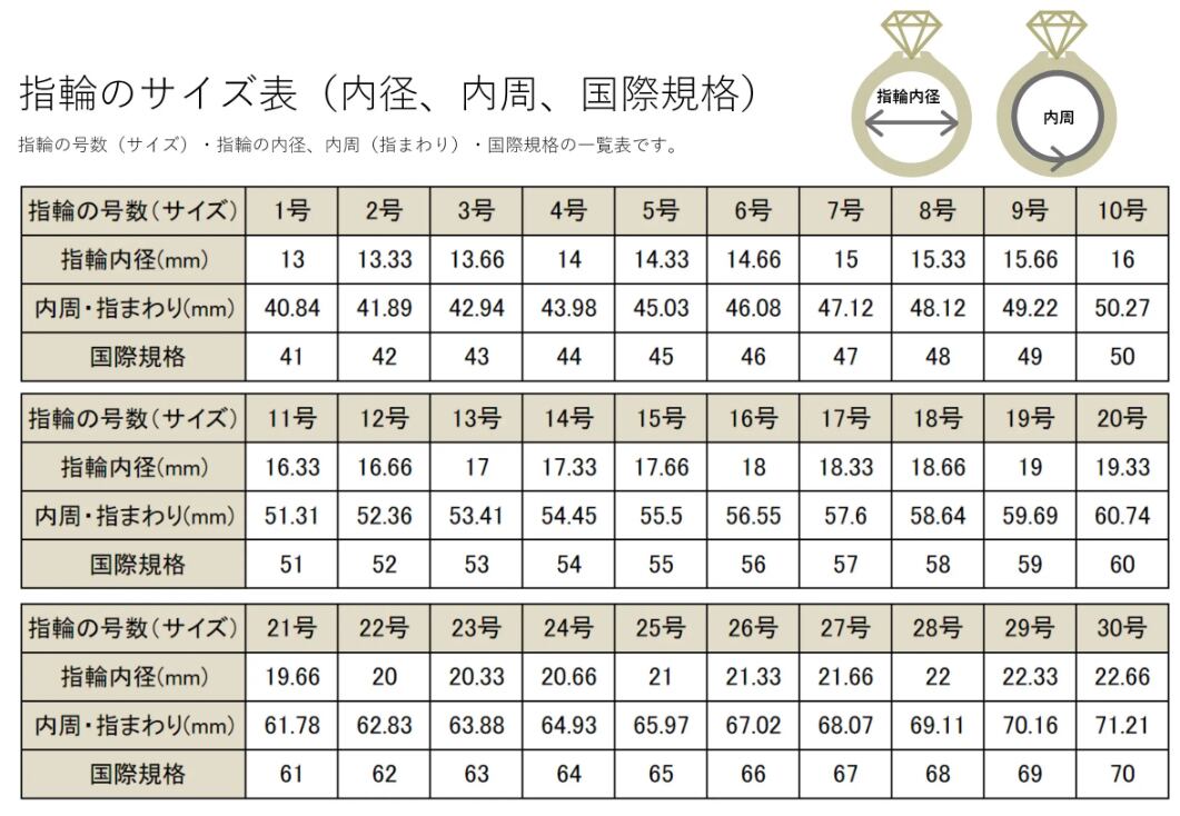 その長さをリングサイズ対応表でご確認いただくことで、ご自身のリングサイズがわかるかと思います。(8枚目画像参照)