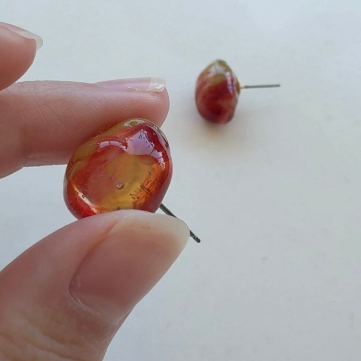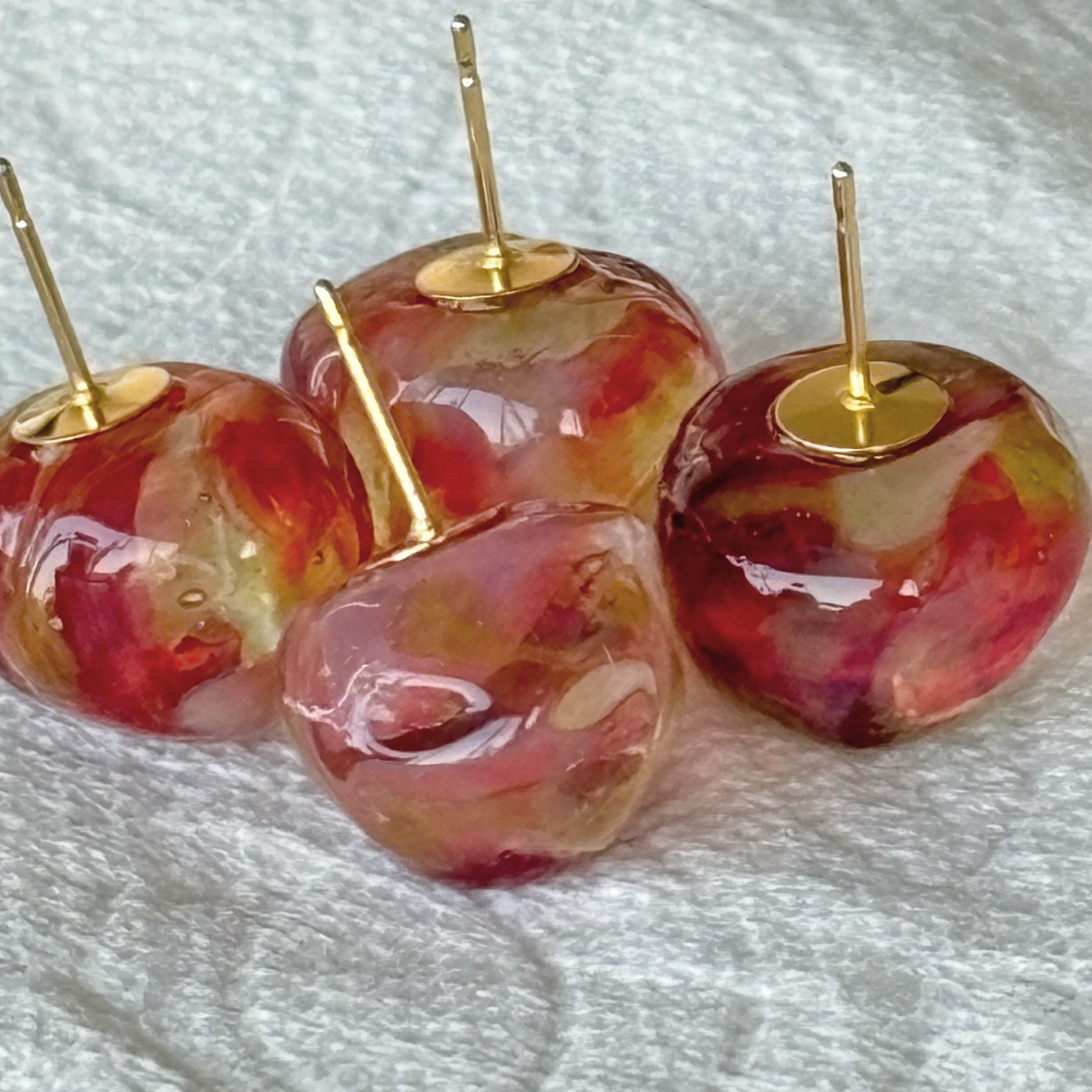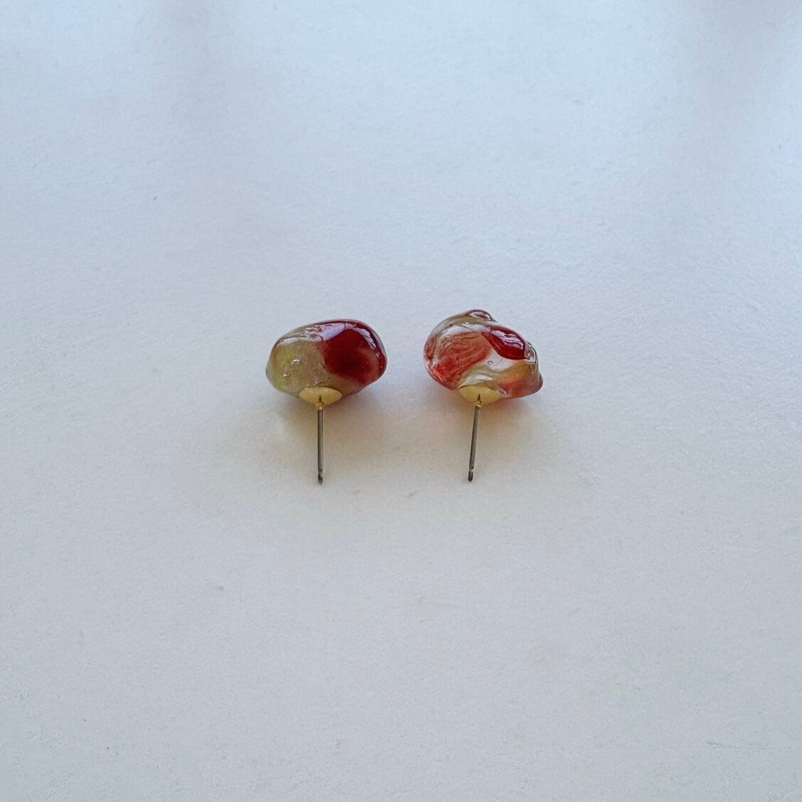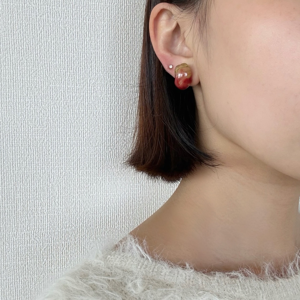 ⚪︎裏に貼り付けるパーツの都合上、ピアスよりイヤリングの方が少し大きめのサイズとなります。